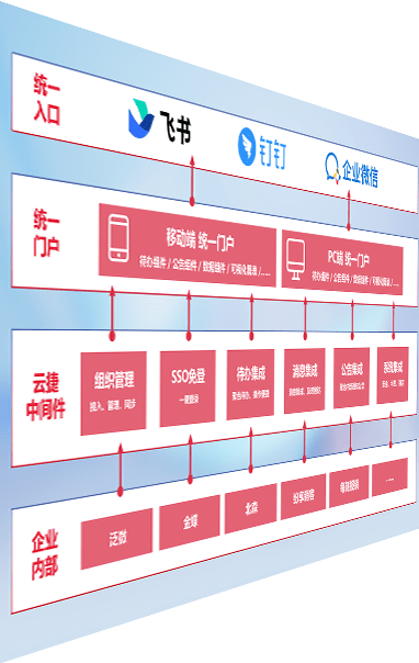 对协作平台提供支持服务,,,支持企业应用与协作平台对接,,,包含组织同步、、消息集成、、、、待办集成等。。支持目前主流的协作平台:钉钉、、、企微和飞书。。。。